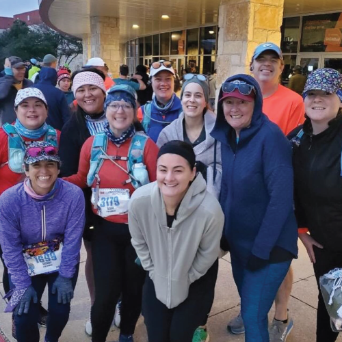 My favorite clubs are Austin Front Runners and Morning Jo’s. Austin Front Runners motivated me to run. Having started as a walker, AFR guided me on my way to becoming a marathon runner. Morning Jo’s has a great atmosphere, even as early as 6 am! The people are the best part because you meet so many runners and walkers with different stories and journeys, all running the same path!